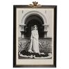 Regal vintage matte-finish 8.25 x 12 photo, affixed to its original 9.25 x 14 mount, of the Queen, decked out in a sequined gown, cape, and crown, and smiling pleasantly, signed in the lower border in black ink, “Elizabeth R 1960.” Photo is housed in its original presentation frame (no glass), adorned with a gold crown and laurels. In fine condition, with signature a shade or two light, but completely legible. A distinguished portrait of the Queen, just eight years into her reign.
