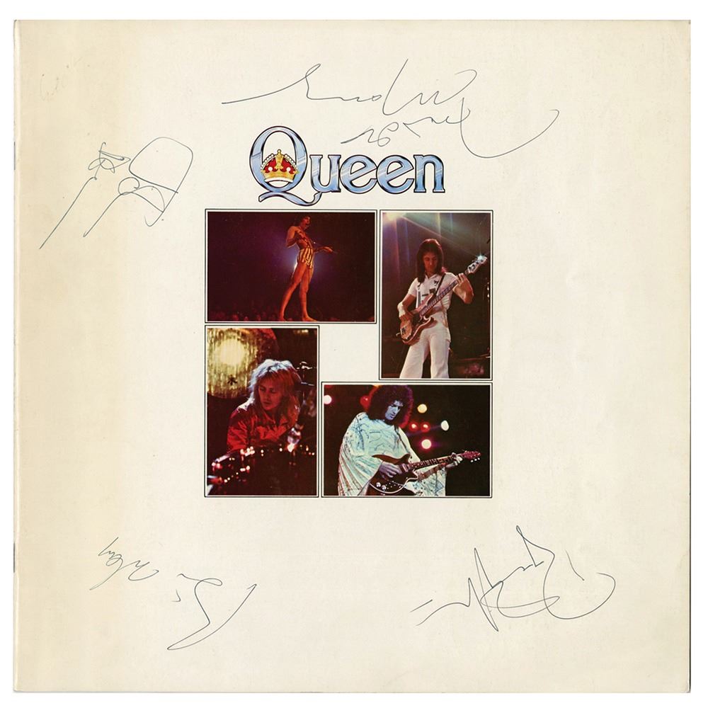 Original program for Queen’s 1977 European Summer Tour, 20 pages, 11.25 x 11.25, signed on the front cover in black ballpoint by Freddie Mercury, Roger Taylor, John Deacon, and Brian May. The consignor notes that the autographs were obtained at the Hippodrome Theatre in Bristol, England on either May 23 or 24, 1977. In fine condition, with faint edge toning.
