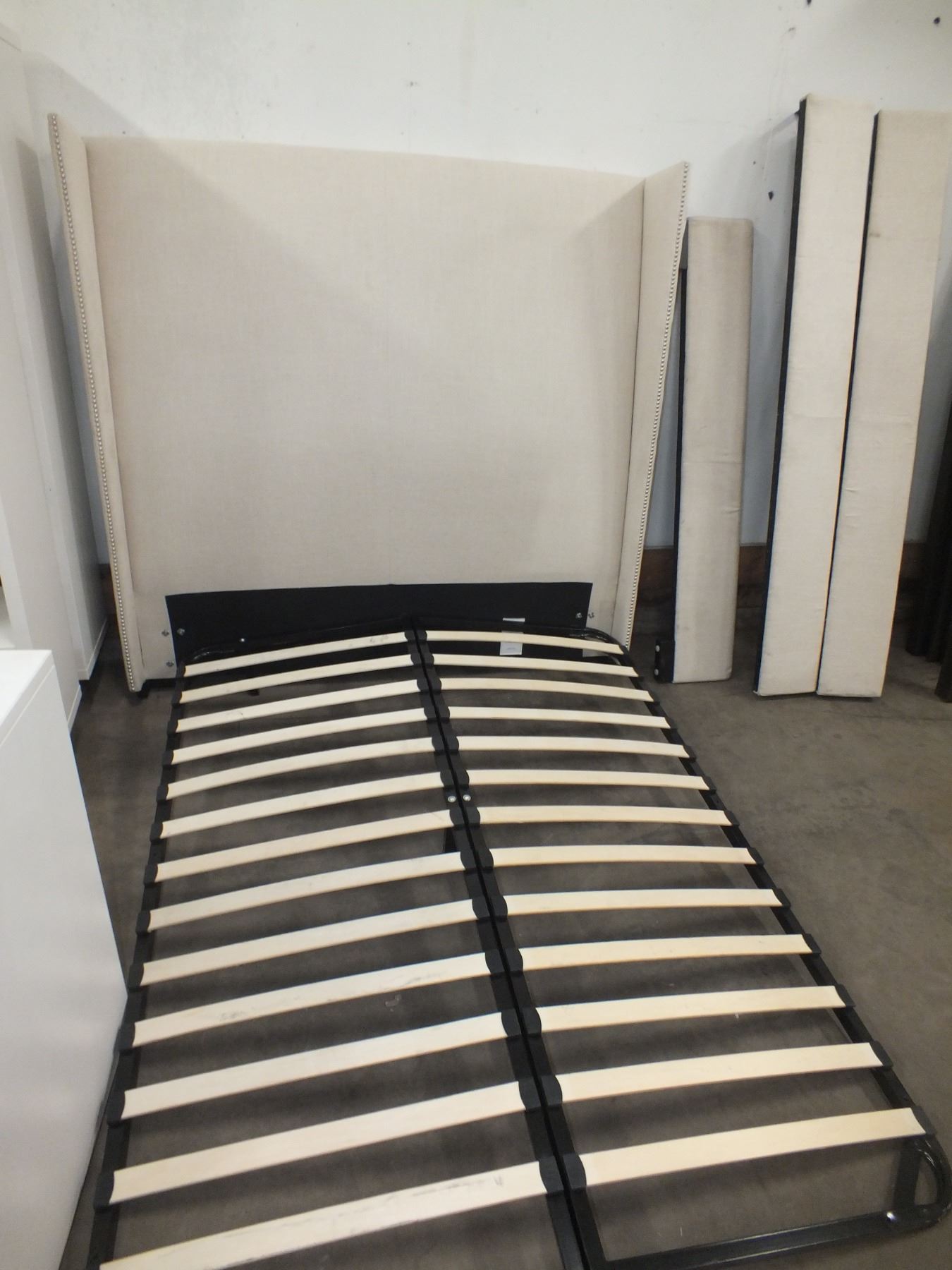 Queen Sized Bed Frame, you get the foot and head board, rails, no mattress...show home.......like new