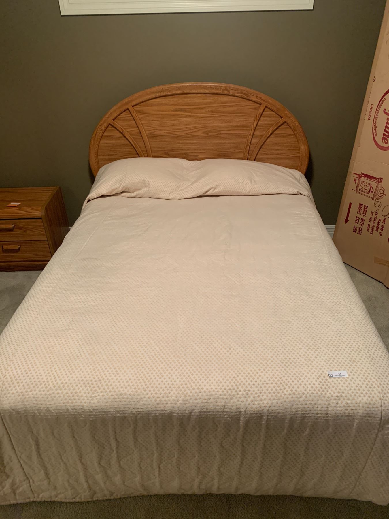 Queen Sized Bed - w/ Mattress, Headboard Box Spring, Pillow Topper, and All Bedspreads