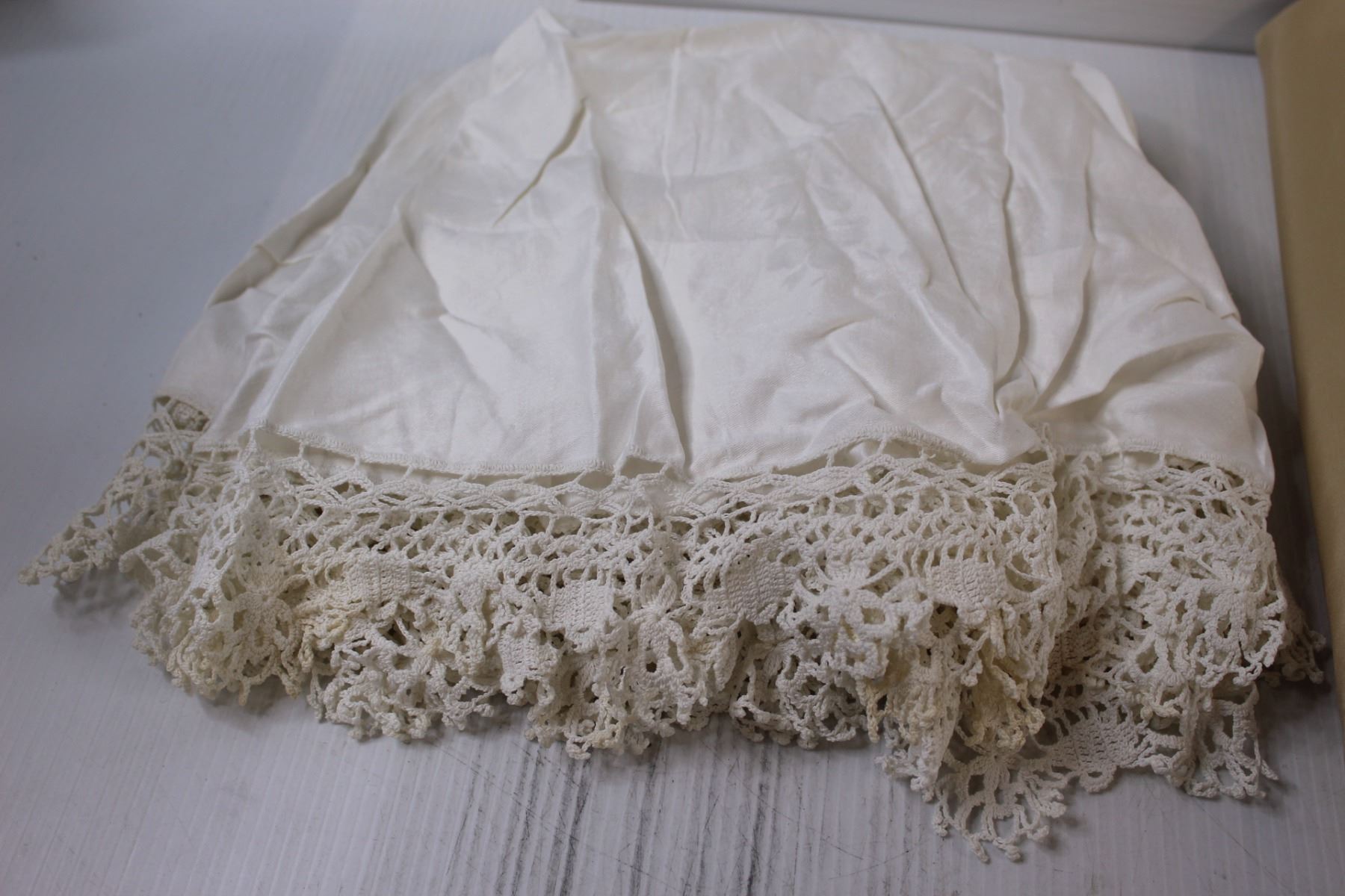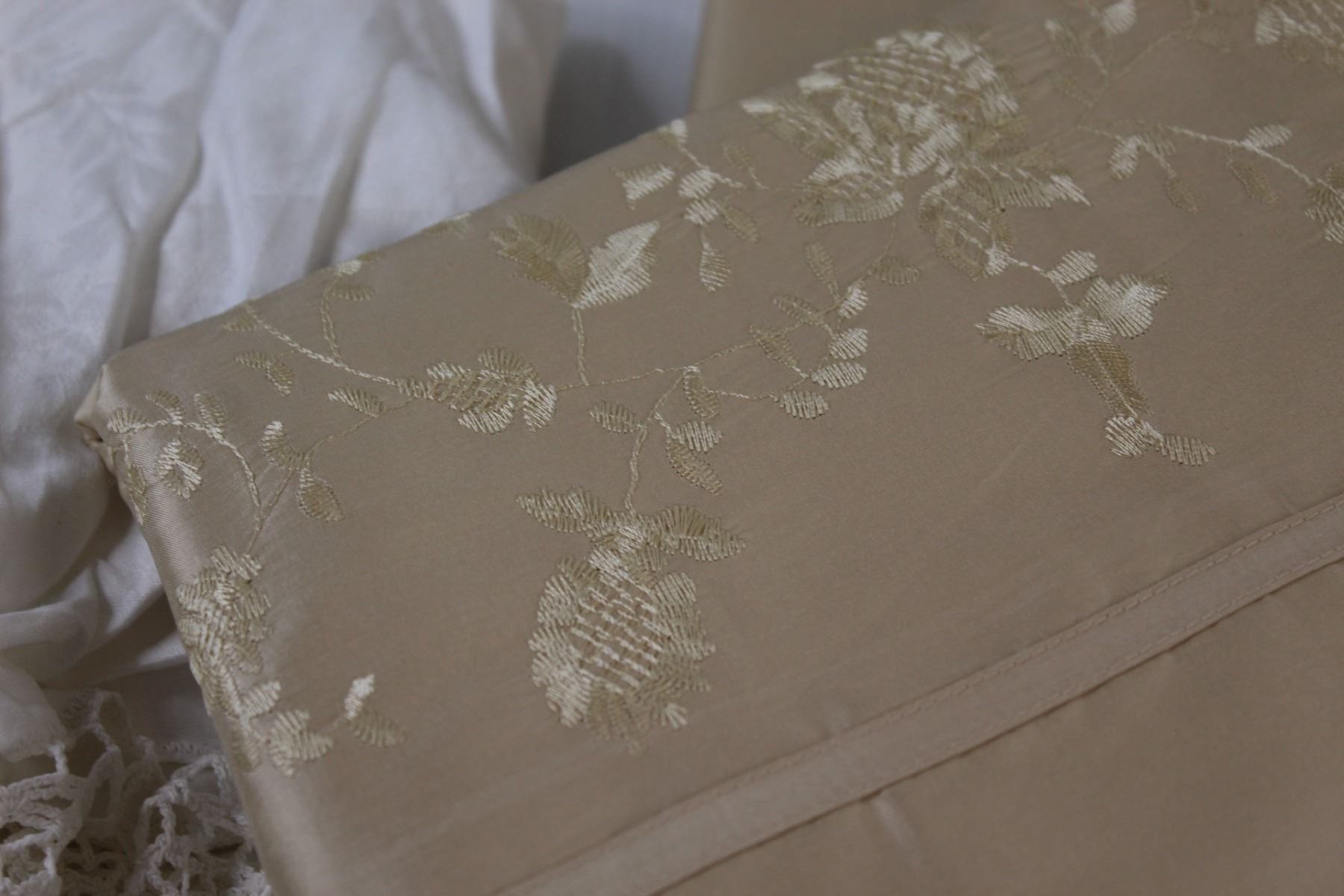 Queen Sized Duvet Embroidered Cover (Beige) & Lace Round Table Cloth - 46" Diameter