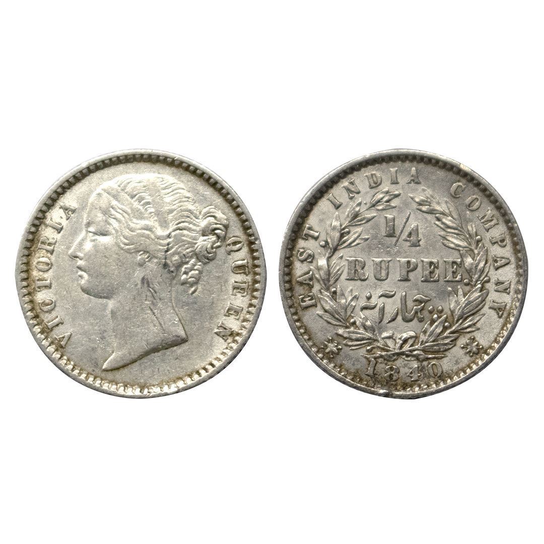 Queen Victoria, 1840, Silver ¼ Rupee, Calcutta Mint.