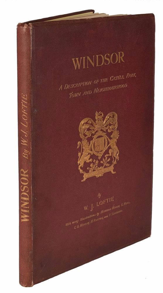 Signed book: Windsor: A Description of the Castle, Park, Town and Neighbourhood. London: Seeley & Co., 1886. Hardcover, 10.5 x 14, 91 pages. Signed and inscribed on a free end page in ink to her son-in-law, "To dear Lorne, from his affectionate Mama, V. R. I., Christmas 1885." An ownership inscription in pencil on the first free end page notes, "Bought at Sotheby's sale Feb 23, 1948 of the Duke of Kent's books. Lot 172." Autographic condition: fine, with light foxing and staining to the beginning pages, including the signed page; interior pages are generally clean. Book condition: VG/None, with edgewear to boards and corners. The recipient, John Campbell, 9th Duke of Argyll, Marquess of Lorne, was the husband of Victoria's daughter Princess Louise; he served as the governor general of Canada from 1878 to 1883. A significant association copy.