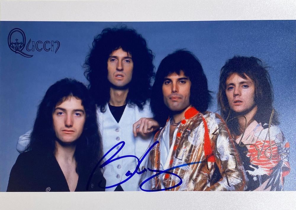 Queen facsimile signed photo autographed by Brian May and Roger Taylor. 8x10 inches. This item is a reprint of an original autograph