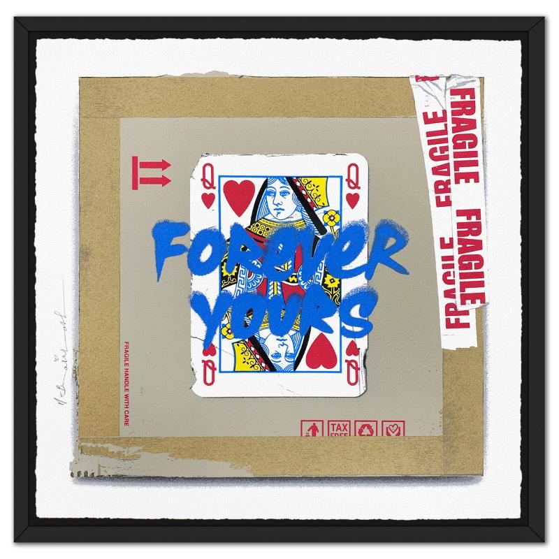 "Queen of Love (Blue)" is a limited edition silk screen print on paper by Mr Brainwash, hand signed and thumb-printed by the artist. The piece comes custom framed with a Certificate of Authenticity. Measures approx. 26" x 26" (framed), 22" x 22" (image). This item requires special handling and may have a longer than usual turnaround.