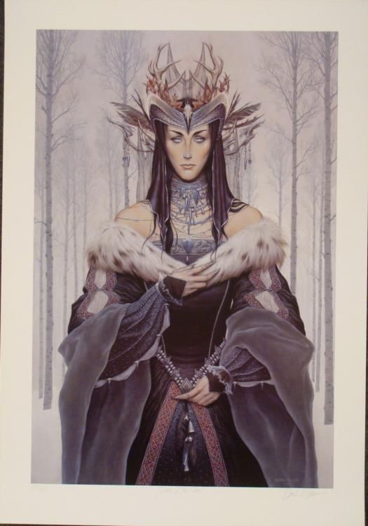 The queen of the snows will surely leave you snowblind. * Artist: Dawn Wilson Signature: In pencil, lower right Title: Queen of the Snows Medium: Print on paper Edition: Numbered out of 750 Sheet Size: 23" x 33" Certificate of Authencity from Whitecondor Studio Condition: Excellent * Biography: * Ms. Wilson was born in Delaware in 1960, received a BFA from the Moore College of Art in Philadelphia, Pennsylvania and currently resides in Livermore, California. Her work has won numerous awards and has appeared on the cover of numerous science fiction and fantasy books and magazines. * *
