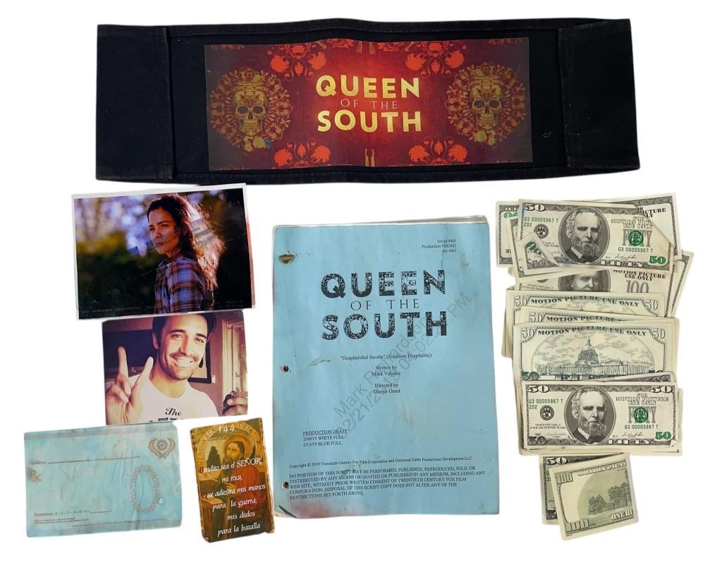 Original collection of props and production materials used in the production of the crime drama television series 'Queen of the South' (2016–2021), where Teresa flees Mexico after her drug-runner boyfriend is murdered. Settling in Dallas she looks to become the country's reigning drug smuggler and to avenge her lover's murder.