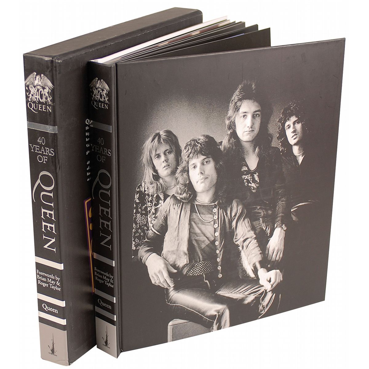 Signed book: 40 Years of Queen. First edition. England: Carlton Books, 2011. Hardcover with dustjacket, 10 x 11.5, 92 pages. Signed on the title page in silver ink by Brian May and Roger Taylor. In fine condition. The book is housed in a stunning slipcase and is packed with memorabilia and many high quality reproductions of handwritten lyrics, ticket stubs, tour posters, backstage passes, and an exclusive interview CD. Signed copies of this book are extremely rare and came directly from the publisher.