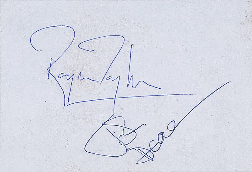 Ballpoint signatures of Roger Taylor, John Deacon, and Brian May on two white 4.5 x 3.5 album pages, each affixed to slightly larger gold cards. In fine condition. Accompanied by a letter of authenticity from James Spence.