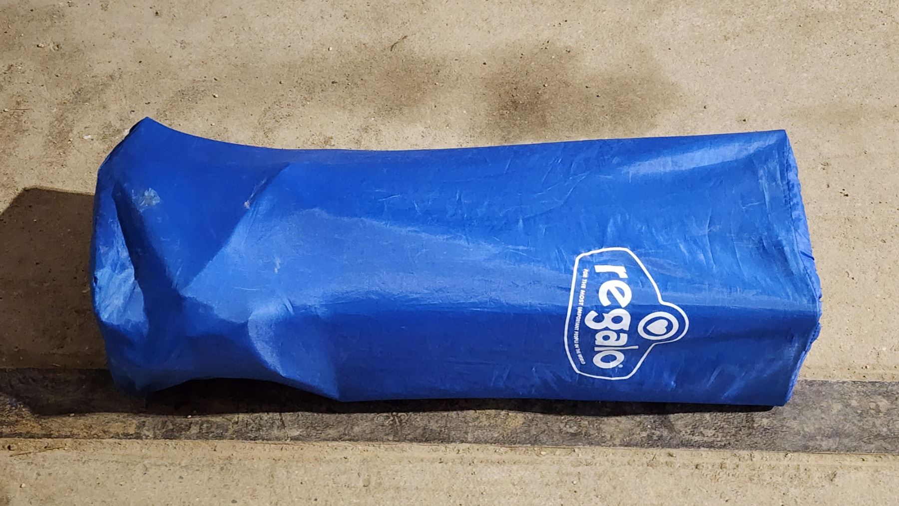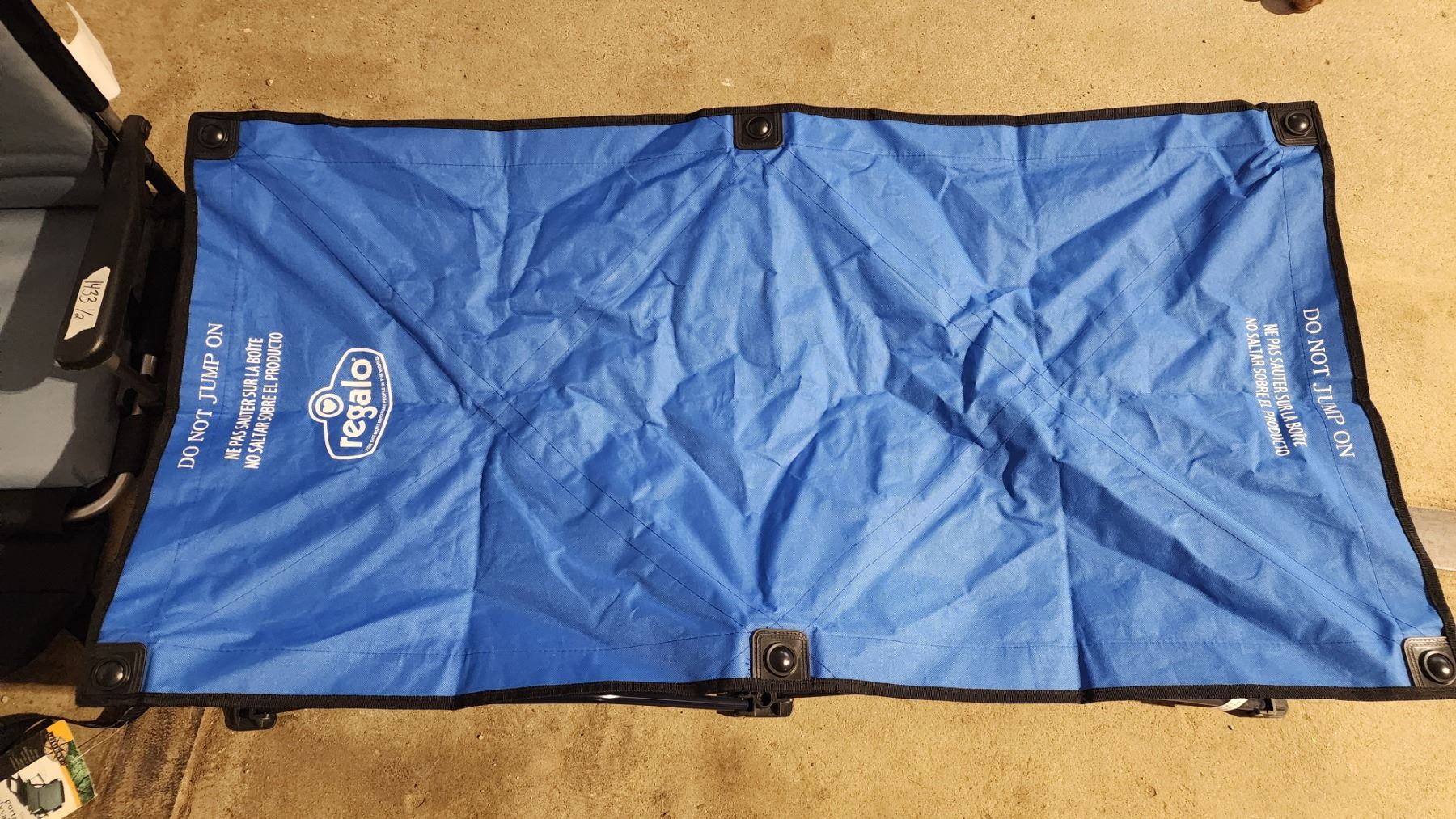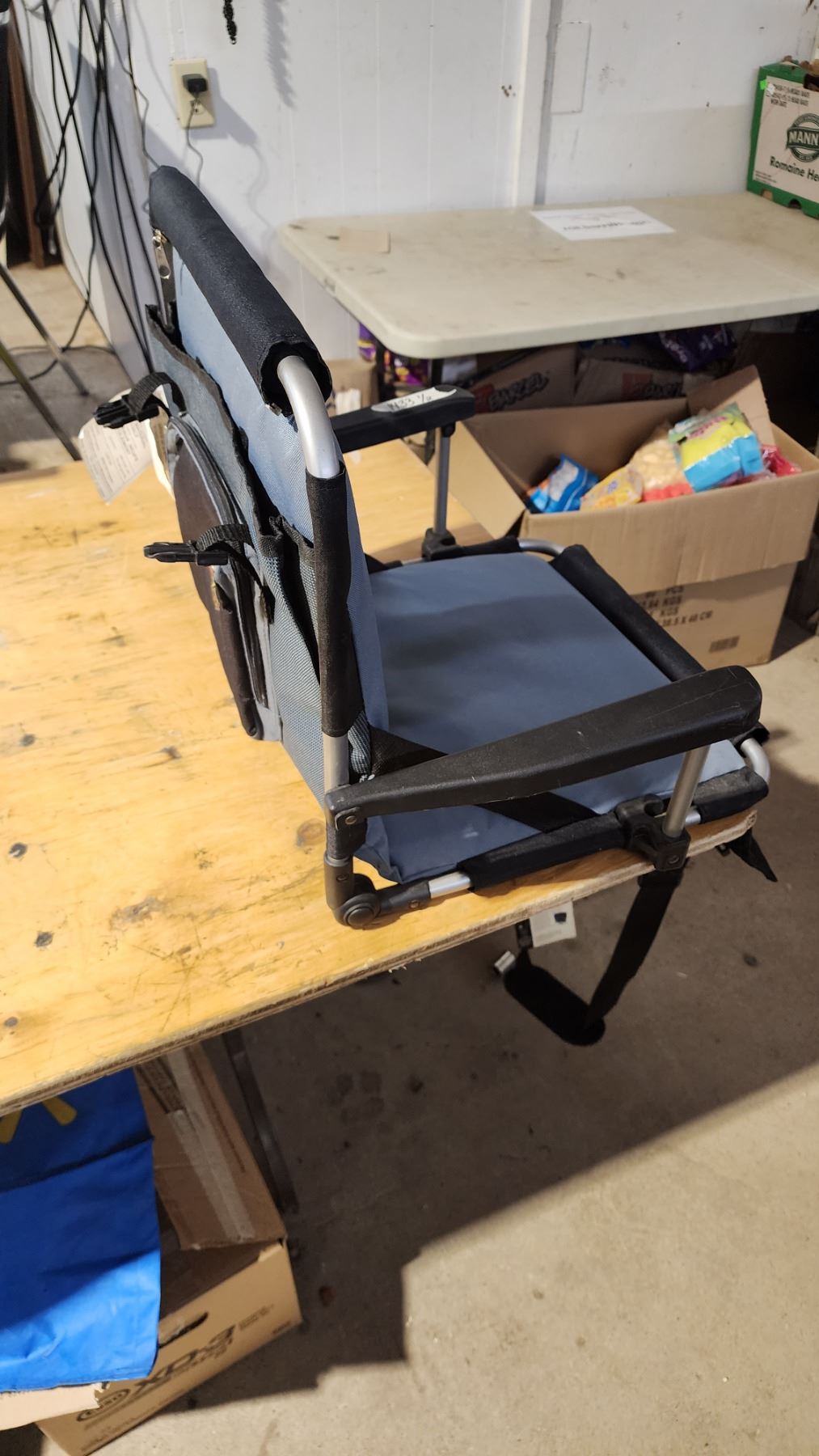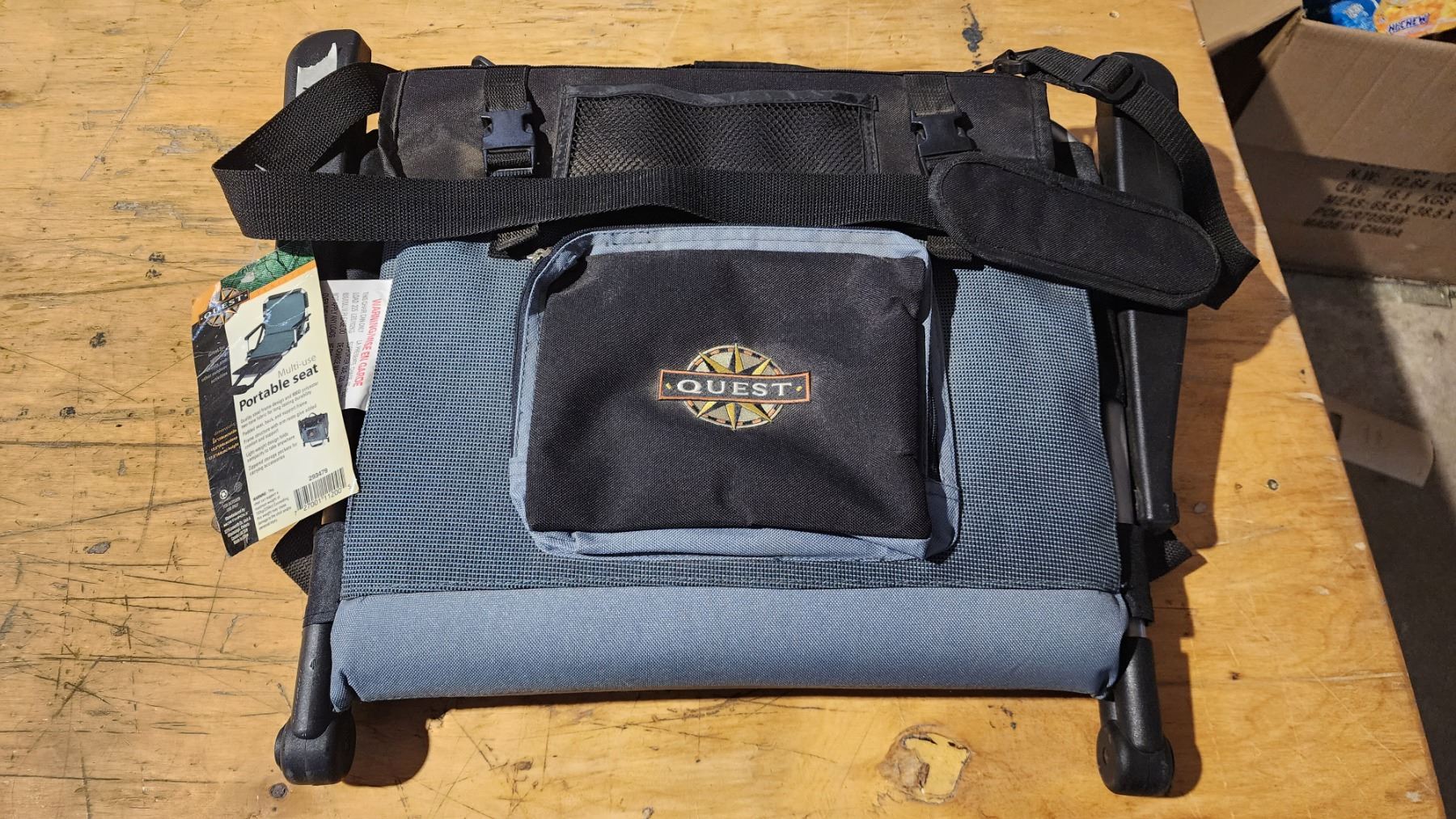 "Quest" folding stadium chair - has tags, appears unused & "Regalo" Toddler folding cot, c/w bed sheet and carrying bag - appears unused