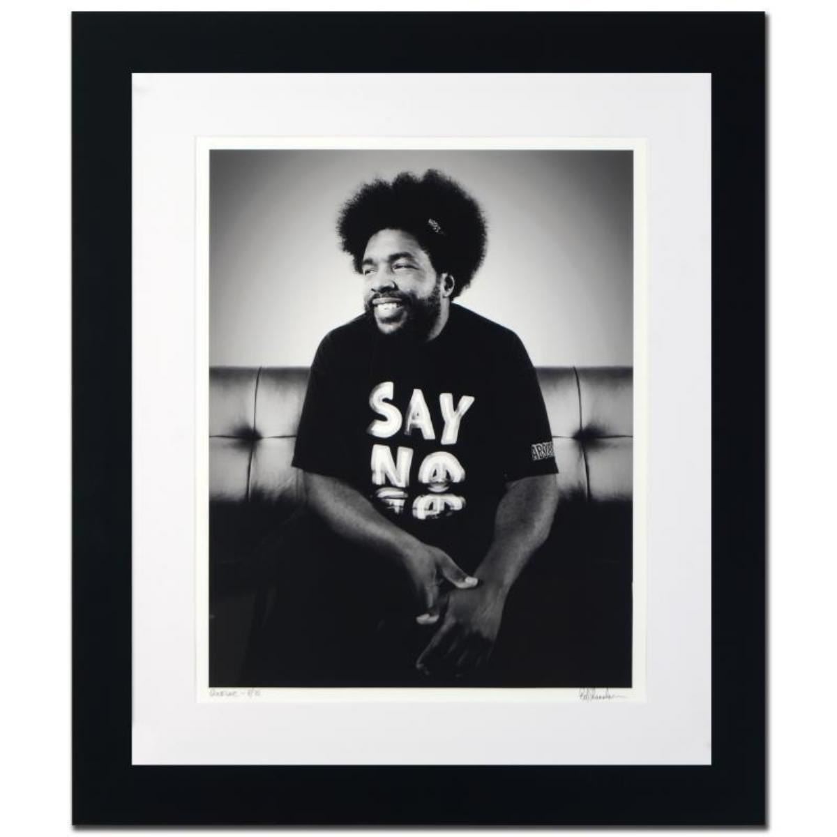 "Questlove" is a limited edition giclee on paper, numbered and hand signed by acclaimed music industry photographer Rob Shanahan. Includes Certificate of Authenticity. Measures approx. 26" x 30" (with frame), 15.5" x 20" (image).