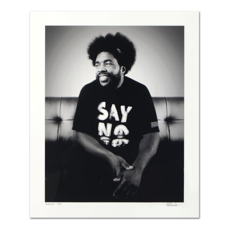 "Questlove" is a limited edition giclee on paper, numbered and hand signed by acclaimed music industry photographer Rob Shanahan. Includes Certificate of Authenticity. Measures approximately 15.5" x 20" (image).