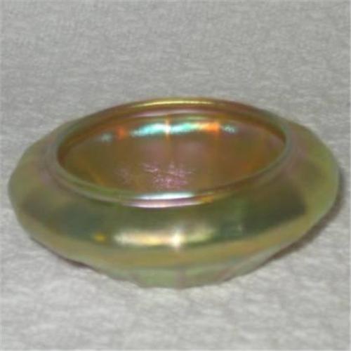Quezal gold open salt, signed,1901-1920,1"H x 2 5/8". Excelent.