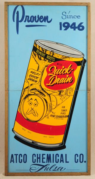 "Quick Drain" Tulsa Oklahoma Wooden Sign, Measures 8' x 4'