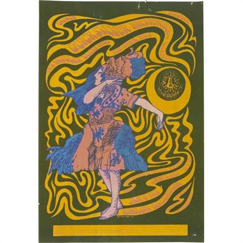 <B>Quicksilver Messenger Service "Dancing Lady" Avalon Concert Poster FD-42 (Family Dog, 1967)</B></I> Victor Moscoso design, also known as "Chicken Lady". Poster is dated 1966; concerts took place on January 6th and 7th, 1967. Other acts included Miller Blues Band and the Other Half. First printing. Approximate size 13" x 19". VG condition, with tack holes and other small holes, tears, and abrasions, mainly along the outer edges.<BR><BR><b>Shipping:</b> Flat Material, Large (<a target="_blank" href="http://www.heritageauctions.com/common/shipping.php">view shipping information</a>)