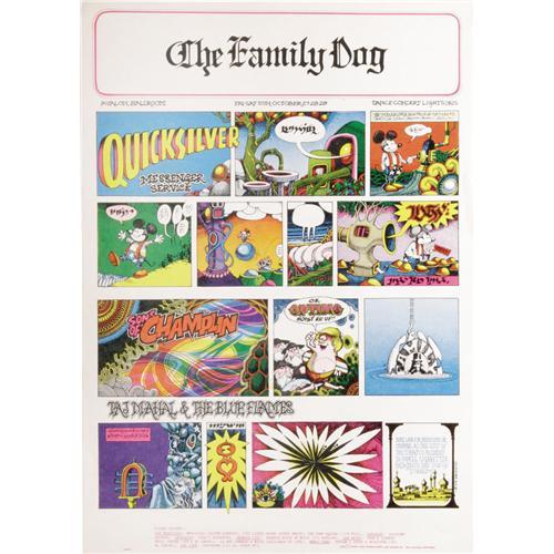 <B>Quicksilver Messenger Service "Morning Paper" Avalon Concert Poster FD-89 (Family Dog, 1967)</B></I> Rick Griffin's trippy graphics make this popular poster appear like a page of Sunday Funnies -- from another planet! Rick even manages to slip in his old "Murph the Surf" character amid the swirling psychedelic colors, shapes, and forms! Supporting the Service was the horn-driven Sons of Champlin and modern blues master Taj Mahal. This first-printing poster measures 14.25" x 20", and is in beautiful NM condition.