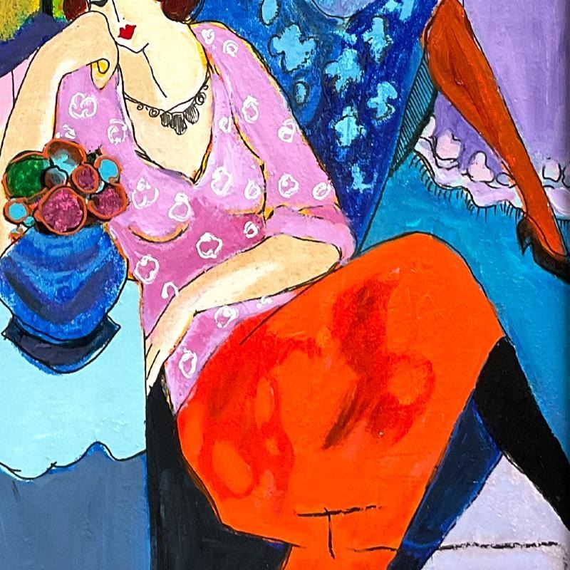 "Quiet Afternoon" is a one-of-a-kind mixed media over paint on wood by Itzchak Tarkay (1935-2012), hand signed by the artist. This piece comes custom framed. Includes Letter of Authenticity. Measures approx. 16" x 13" (frame), 11" x 8" (image).