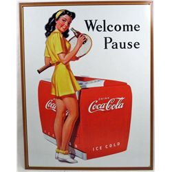 8693 - WELCOME PAUSE COCA COLA METAL SIGN APPROX. 12 "1/2 x 16