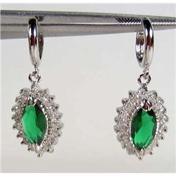 9269 - WHITE GOLD PLATED EMERALD & WHITE TOPAZ EARRINGS