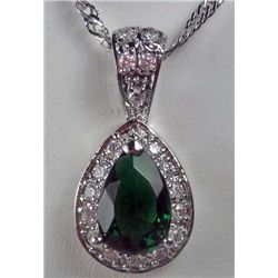 11187 - WHITE GOLD PLATED EMERALD AND WHITE TOPAZ PENDANT W/ CHAIN