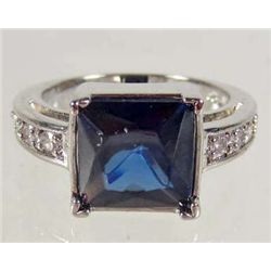 9301 - WHITE GOLD PLATED SAPPHIRE & WHITE TOPAZ RING