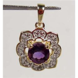 3226 - SILVER AMETHYST AND DIAMOND PENDANT MARKED .925