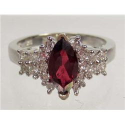 3212 - SILVER RED RUBY & TOPAZ RING MARKED .925 SIZE 7