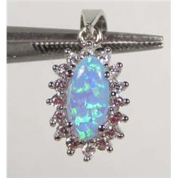 3213 - SILVER BLUE FLASH GREEN DOUBLET OPAL & TOPAZ PENDANT MARKED .925