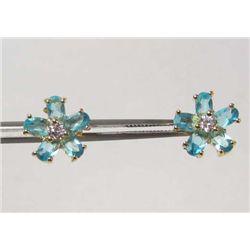 2852 - PAIR OF 14K WHITE GOLD PLATED EARRINGS W/ BLUE AQUAMARINE AND WHITE TOPAZ