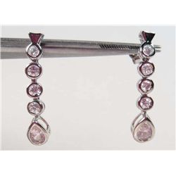 2743 - PAIR OF 14K WHITE GOLD PLATED EARRINGS PINK SAPPHIRE & WHITE TOPAZ