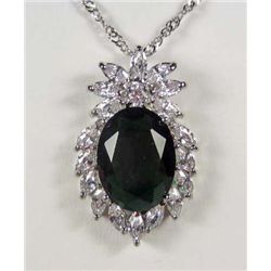 3329 - WHITE GOLD PLATED EMERALD & TOPAZ NECKLACE