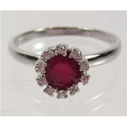 2879 - NATURAL RED RUBY & WHITE TOPAZ RING - MARKED .925 - 13.11 CTW - SIZE 9