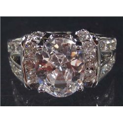 2828 - 14K WHITE GOLD PLATED RING W/ WHITE TOPAZ - SIZE 8