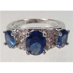 2703 - 14K WHITE GOLD PLATED RING W/ BLUE SAPPHIRE & WHITE TOPAZ - SIZE 6