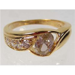 2706 - 14K GOLD PLATED RING W/ PINK SAPPHIRE & WHITE TOPAZ - SIZE 8