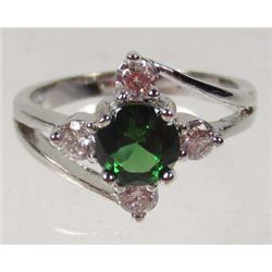 2700 - 14K WHITE GOLD PLATED RING W/ GREEN EMERALD & WHITE TOPAZ - SIZE 8