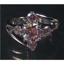 2825 - 14K WHITE GOLD PLATED RING W/ WHITE TOPAZ - SIZE 6