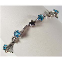 2837 - 14K WHITE GOLD PLATED BRACELET W/ WHITE TOPAZ & BLUE AQUAMARINE
