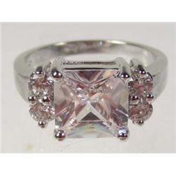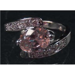 2681 - 14K WHITE GOLD PLATED RING W/ PINK SAPPHIRE & WHITE TOPAZ - SIZE 6.5