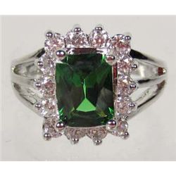 3313 - WHITE GOLD PLATED EMERALD AND TOPAZ RING SIZE 6
