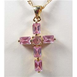 2806 - 14K GOLD PLATED PENDANT NECKLACE W/ WHITE TOPAZ & PURPLE TANZANITE