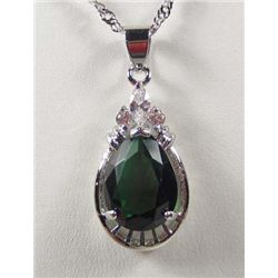 2800 - 14K WHITE GOLD PLATED PENDANT NECKLACE W/ WHITE TOPAZ & EMERALD