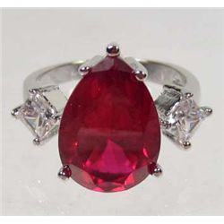 2765 - 14K WHITE GOLD PLATED RING W/ RED RUBY & WHITE TOPAZ - SIZE 7