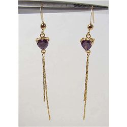 2851 - PAIR OF 14K GOLD PLATED EARRINGS W/ PURPLE AMETHYST
