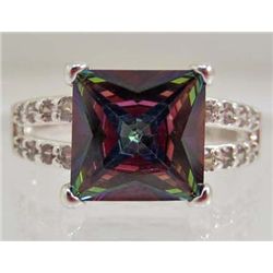 5789 - SILVER RAINBOW MYSTIC & WHITE TOPAZ RING SIZE 8