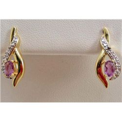 13699 - PAIR OF GOLD OVER STERLING SILVER PURPLE AMETHYST EARRINGS