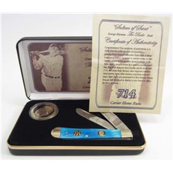 13724 - FROST BABE RUTH TRAPPER W/ COLLECTABLE MEDALLION KNIFE & GIFT BOX