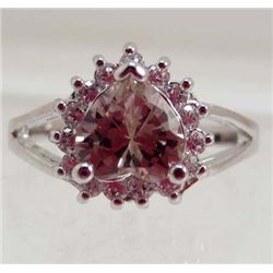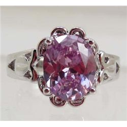 13444 - WHITE GOLD PLATED PINK SAPPHIRE & TOPAZ RING - SIZE 7