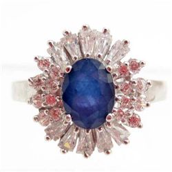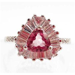 5856 - WHITE GOLD PLATE OVER STERLING SILVER PINK TOPAZ RING SIZE 8.75