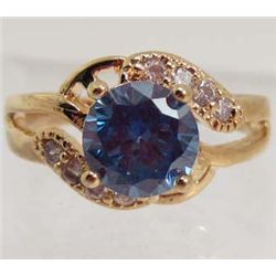 13531 - GOLD PLATED BLUE & WHITE TOPAZ RING - SIZE 7